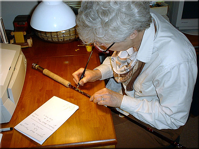 Mary Lu does the writing on the rods. It is never easy. Some times she does a rod six or eight times